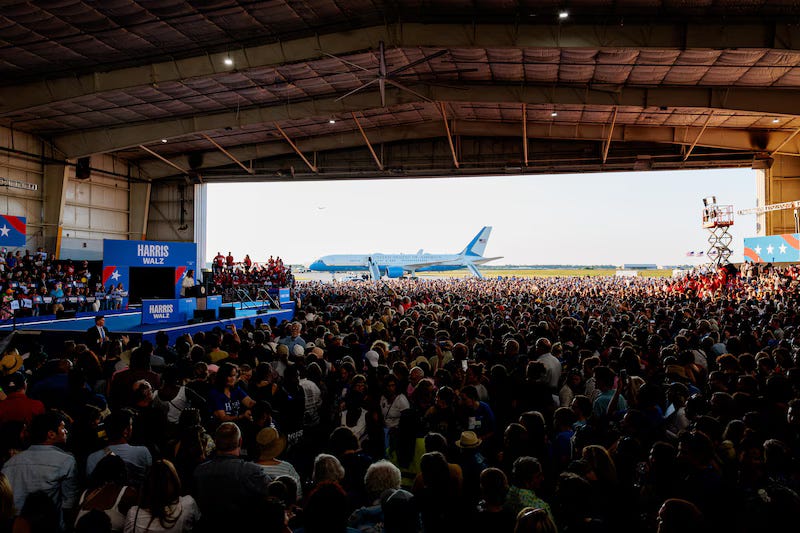 Donald Trump made headlines on Sunday with his BS claim that photos of Vice President Harris’s crowd sizes were actually created by Artificial Intelligence. Trump wrote that images at an airport rally in Michigan were “fake” and that in reality “there was nobody there.” (The photo above of the airport hanger rally was taken by Michigan reporter, Jacob Hamilton of MLive.com) Trump then continued his lie by claiming that even Harris’s rallies—many of which were aired on live on cable news—were actually “fake crowds.”
